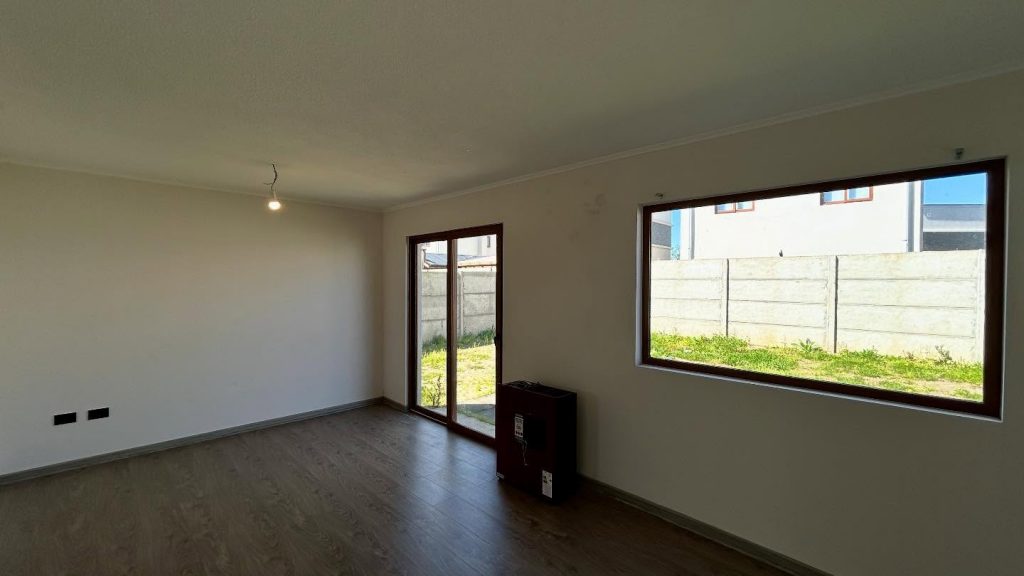La propiedad cuenta con amplio living comedor, cocina independiente, tres habitaciones, dos baños completos más un baño de visitas. Incluye sistema de calefacción a pellet y estacionamiento para 2 vehículos. Condominio tranquilo y seguro, ideal para vivir en familia.